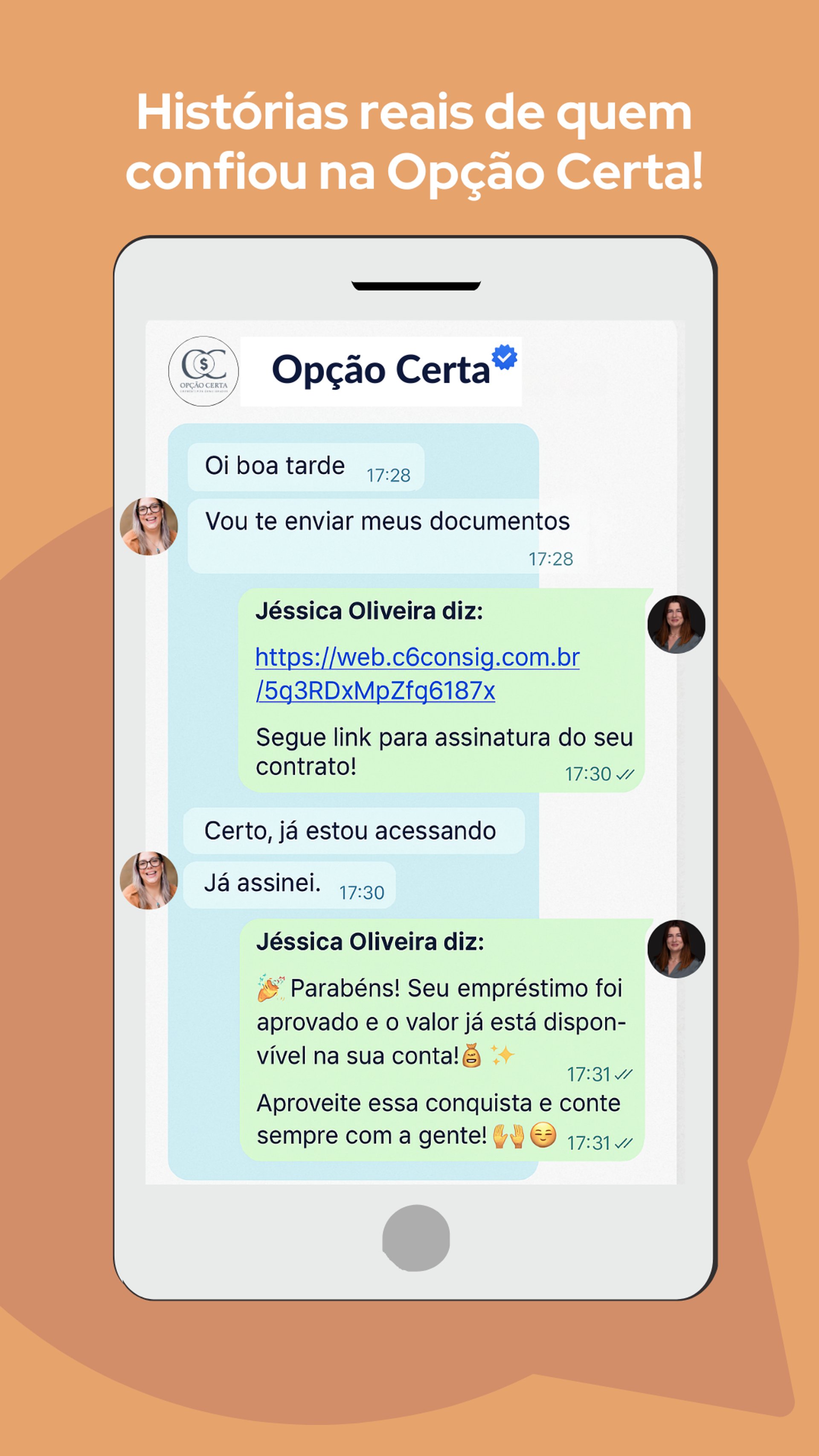 Na Opção Certa, você não é só mais um número. Nosso time escuta, entende e busca a melhor solução para o seu momento financeiro. Mais do que crédito, entregamos tranquilidade e confiança.